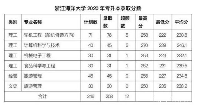 浙江海洋大學東海科學技術學院2020年專升本錄取分數線