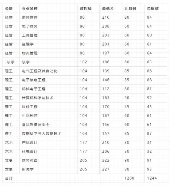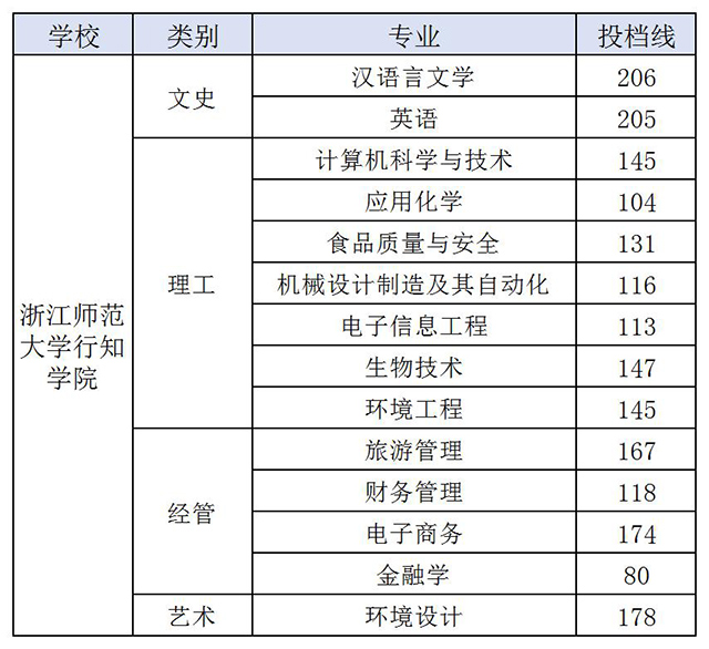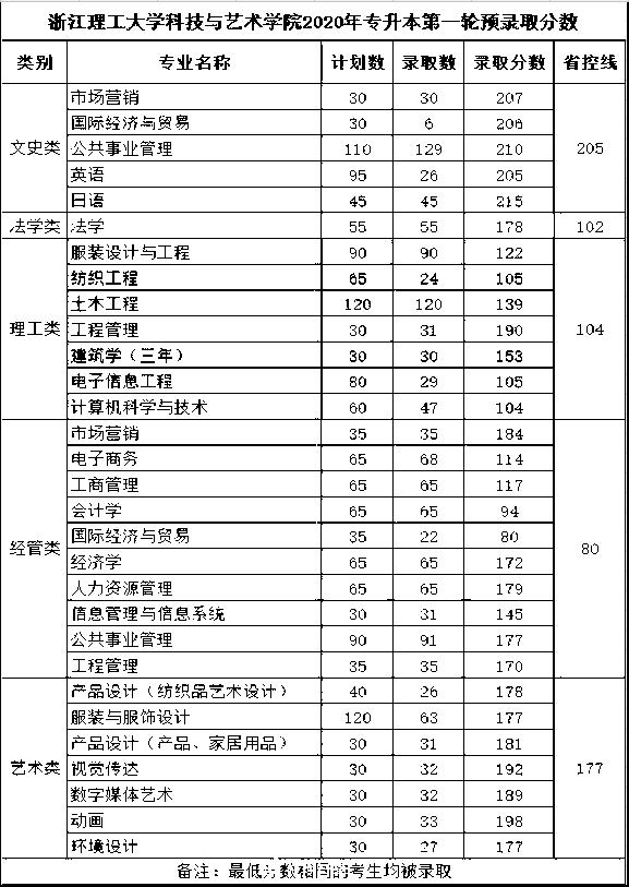 浙江理工大學科技與藝術學院2020年專升本錄取分數線