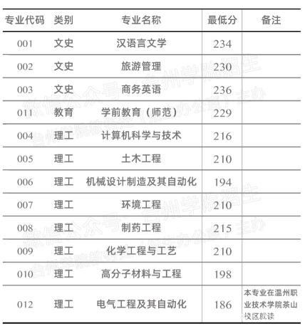 溫州醫科大學仁濟學院2020年專升本錄取分數線
