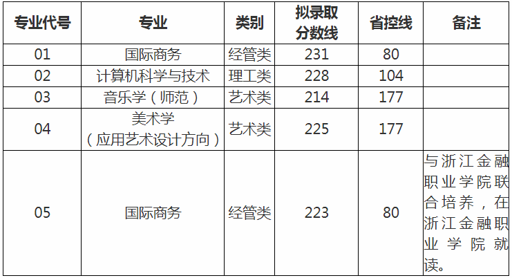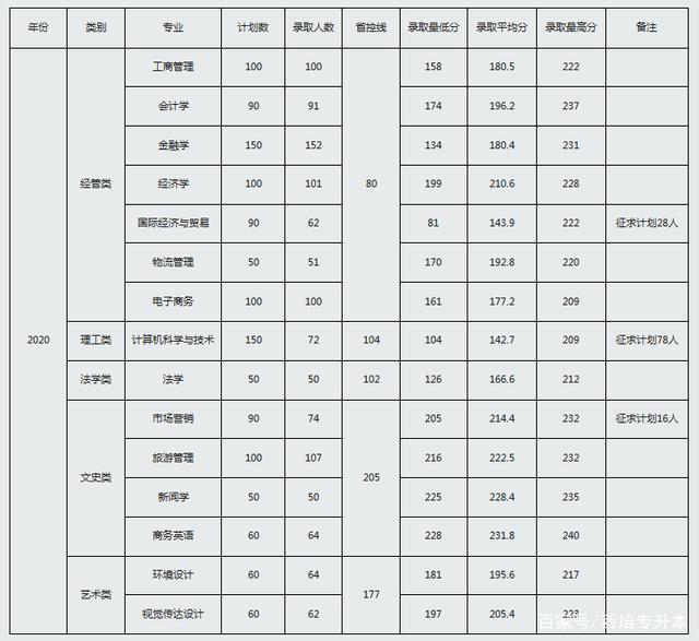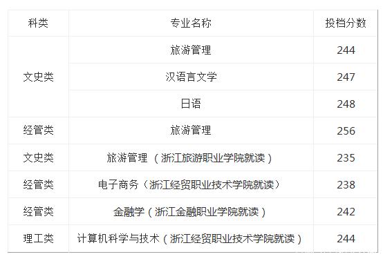 浙江工商大學杭州商學院2020年專升本錄取分數線