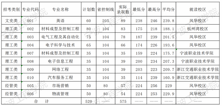 浙江廣廈建設職業技術學院2020年專升本錄取分數線