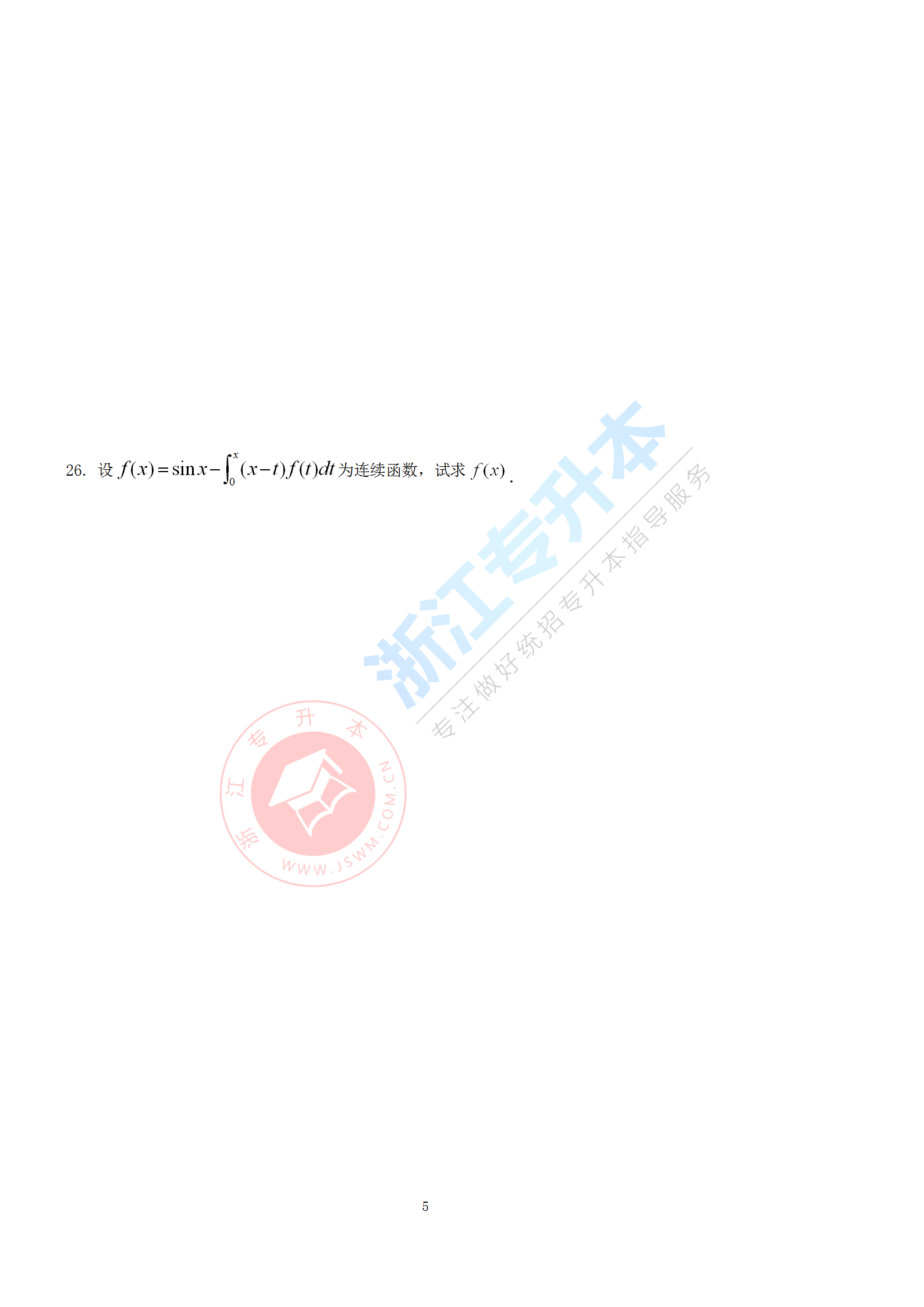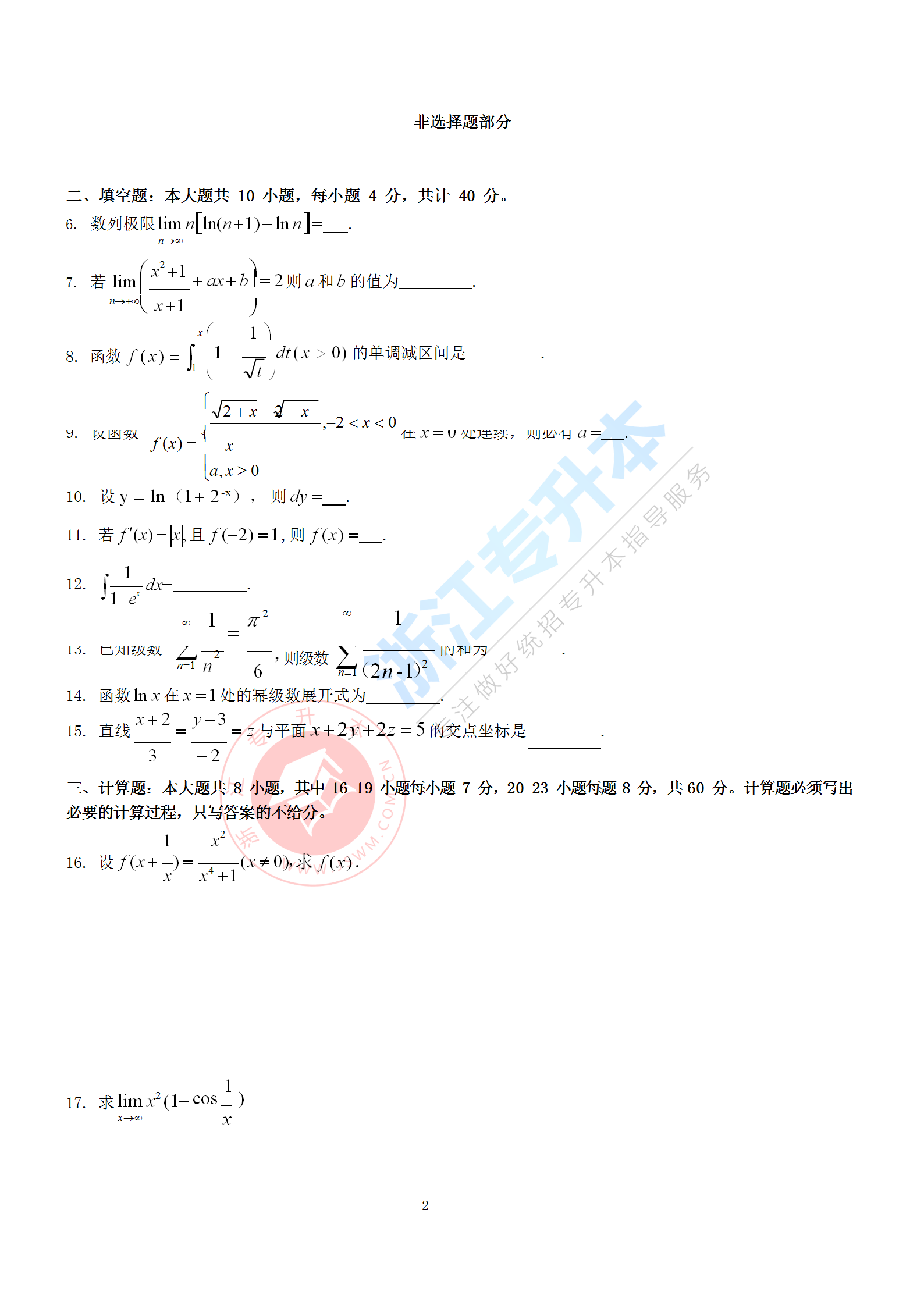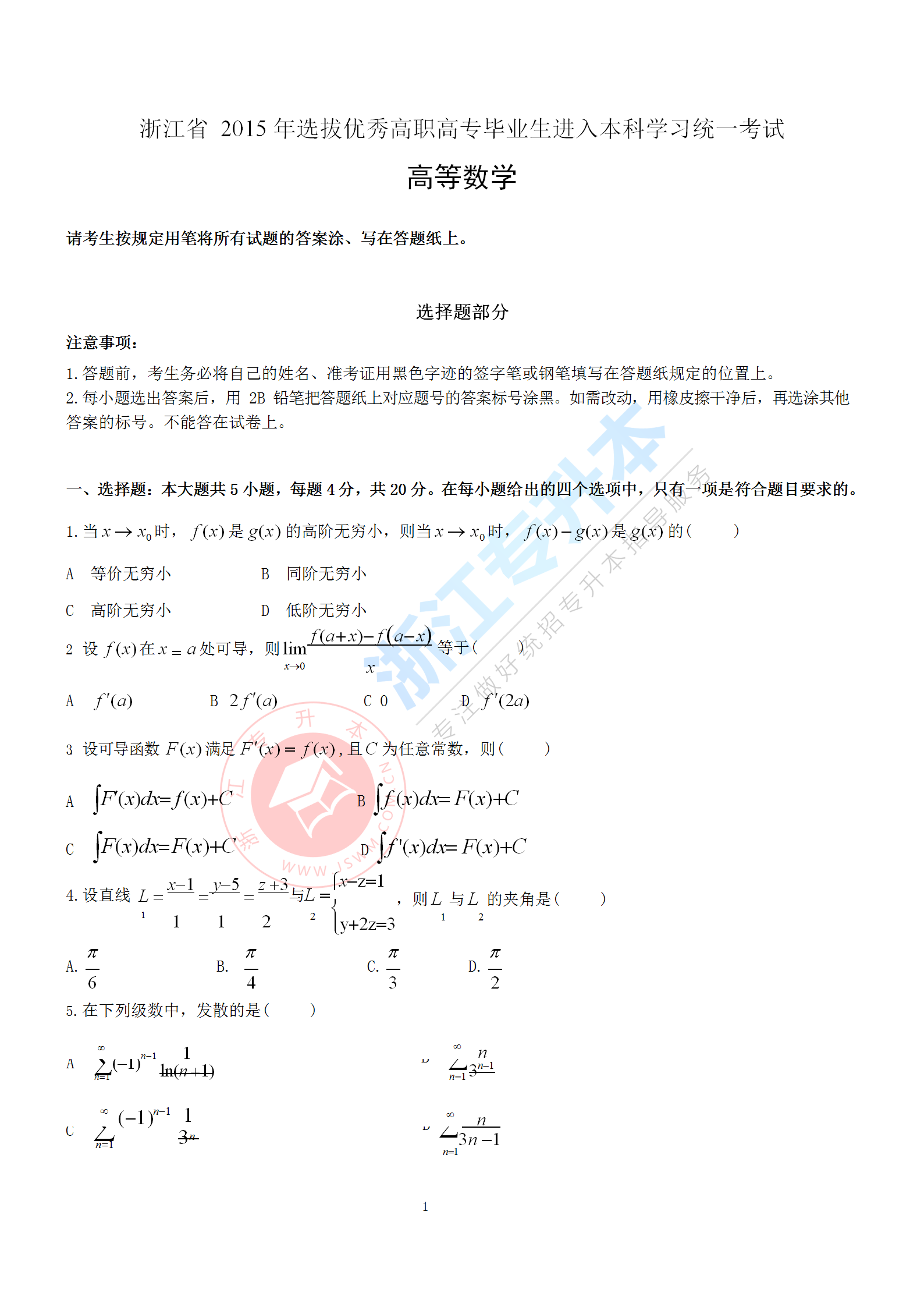 浙江專升本 >統招專升本 > 專升本試題題庫 > 歷年真題 > 2015年浙江專升本《高等數學》真題卷