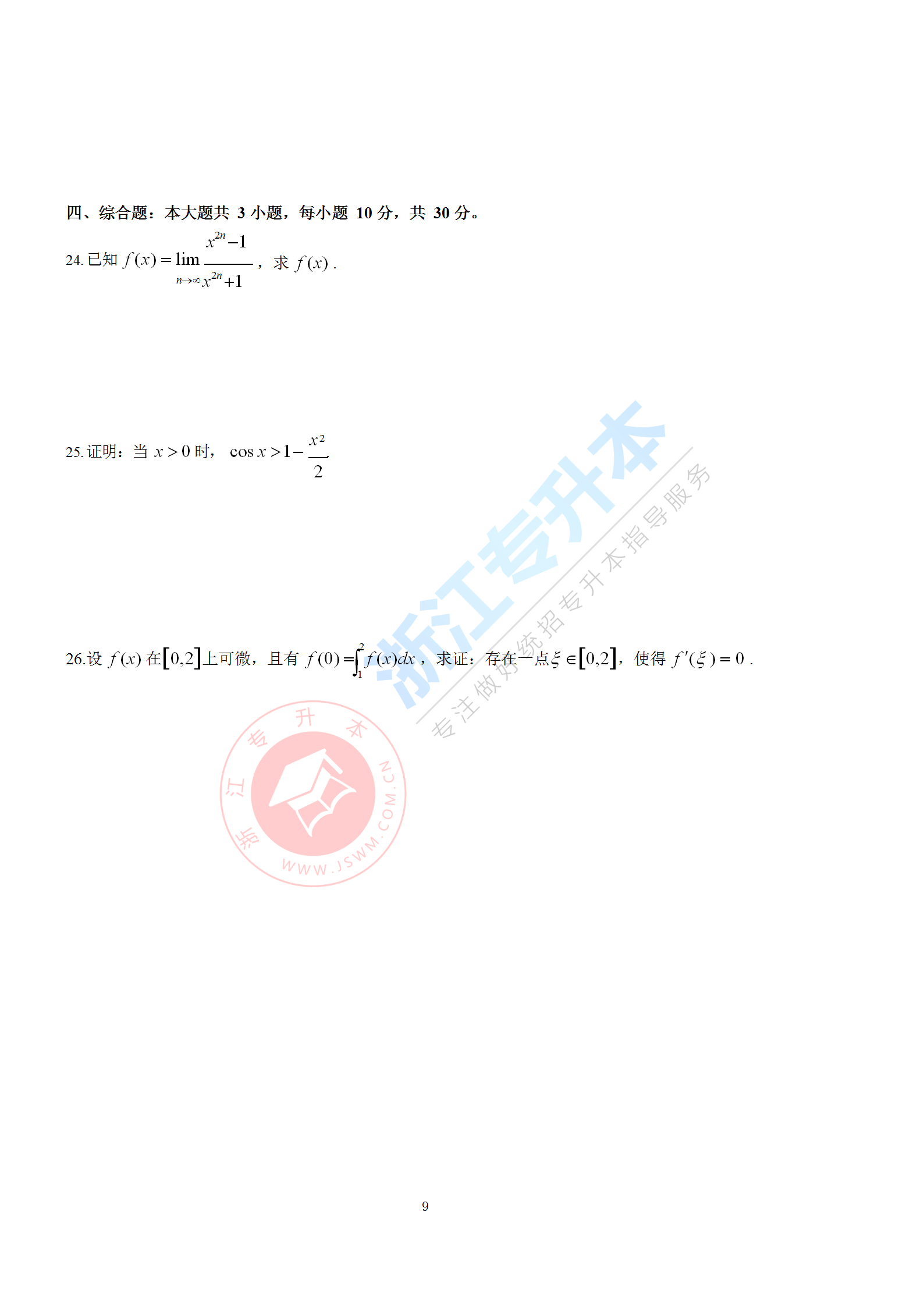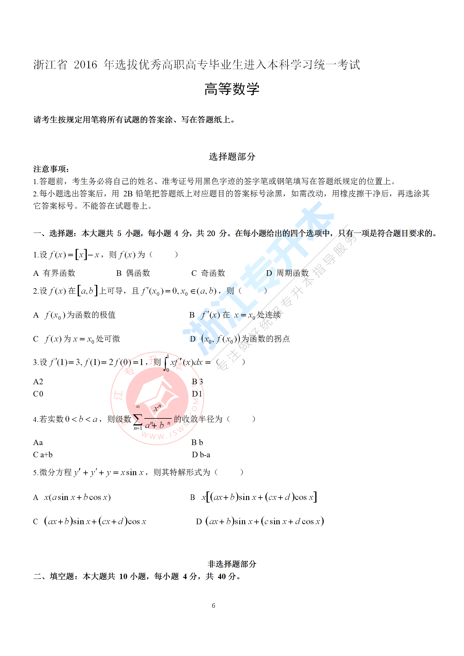 浙江專升本 >統招專升本 > 專升本試題題庫 > 歷年真題 > 2016年浙江專升本《高等數學》真題卷
