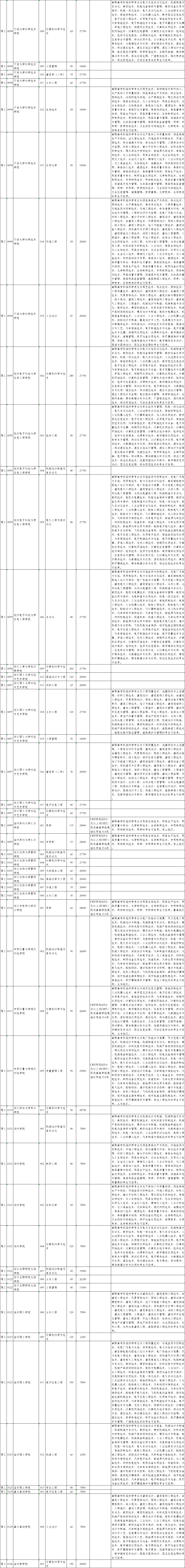 | 理工 | 0015 | 浙江科技學院 | 006 | 環境工程 | 30 | 5500 | 高職高專階段所學專業為環境監測與控制技術、環境工程技術、安全健康與環保、安全技術與管理、材料工程技術、高分子材料工程技術、給排水工程技術、食品生物技術、化工生物技術、藥品生物技術、農業生物技術、應用化工技術、石油化工技術、精細化工技術、工業分析技術、化工裝備技術、染整技術、食品加工技術、釀酒技術、食品檢測技術、藥品生產技術、藥品質量與安全、制藥設備應用技術、化學制藥技術、生物制藥技術、中藥制藥技術、藥學、化學教育、生物教育的考生可報考。在寧波職業技術學院就讀。 | |