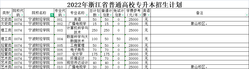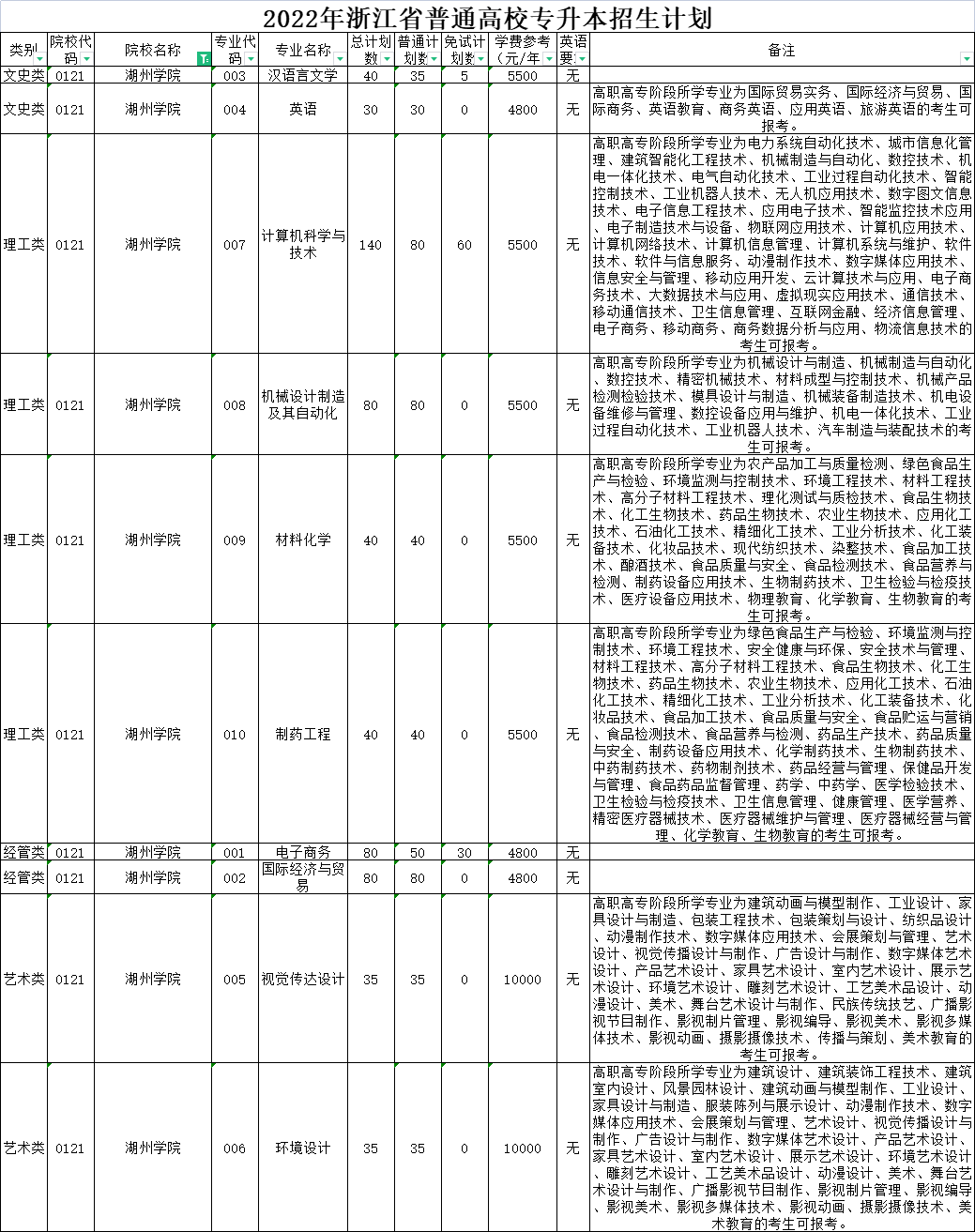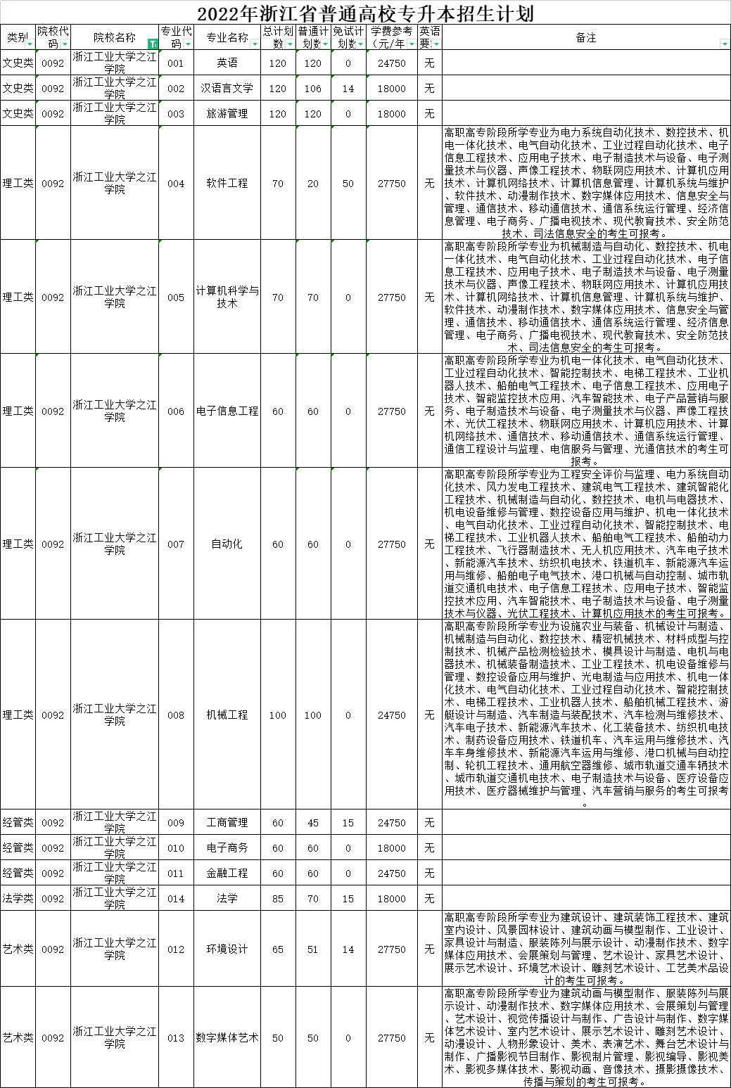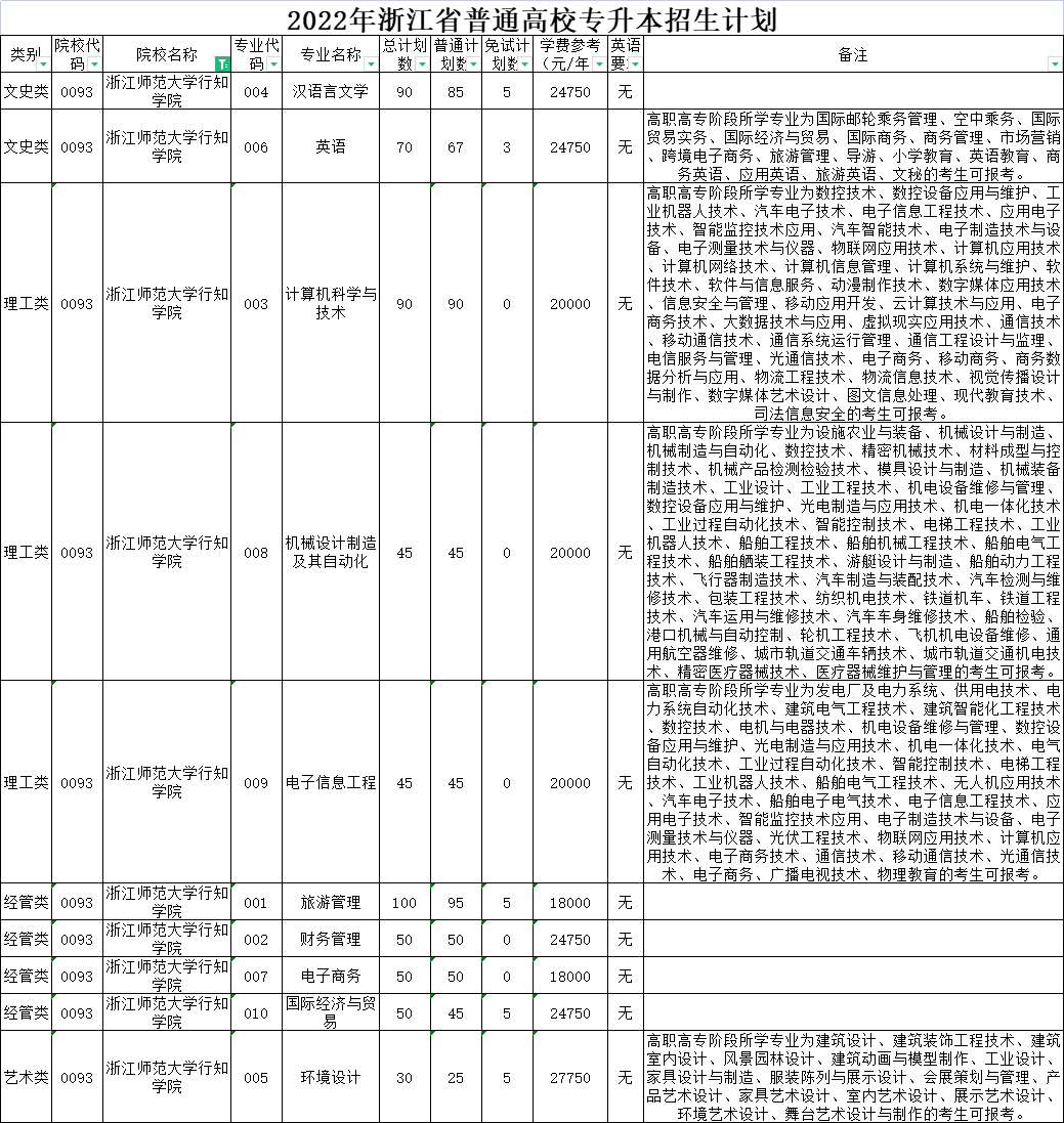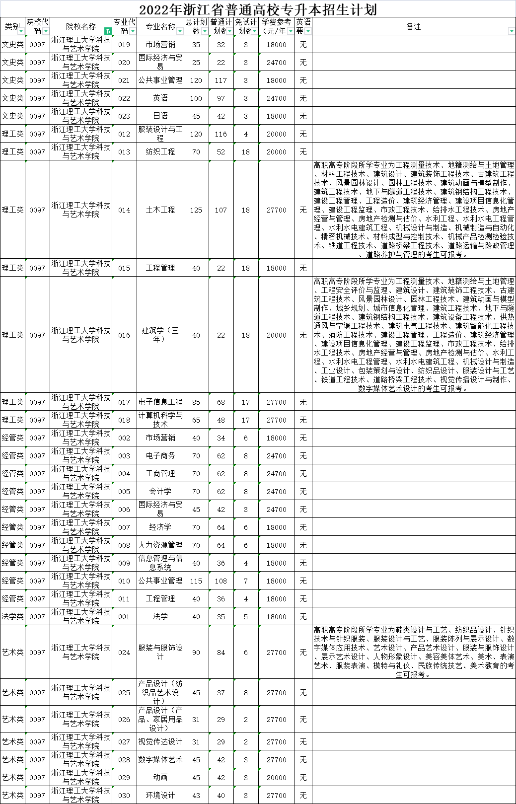 | 經管類 | 0006 | 杭州電子科技大學 | 007 | 電子商務 | 50 | 50 | 0 | 5300 | 無 | 在浙江商業職業技術學院就讀。 |