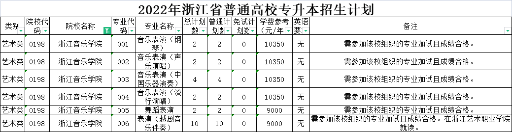 | 類別 | 院校代碼 | 院校名稱 | 專業代碼 | 專業名稱 | 總計劃數 | 普通計劃數 | 免試計劃數 | 學費參考(元/年) | 英語要求 | 備注 |